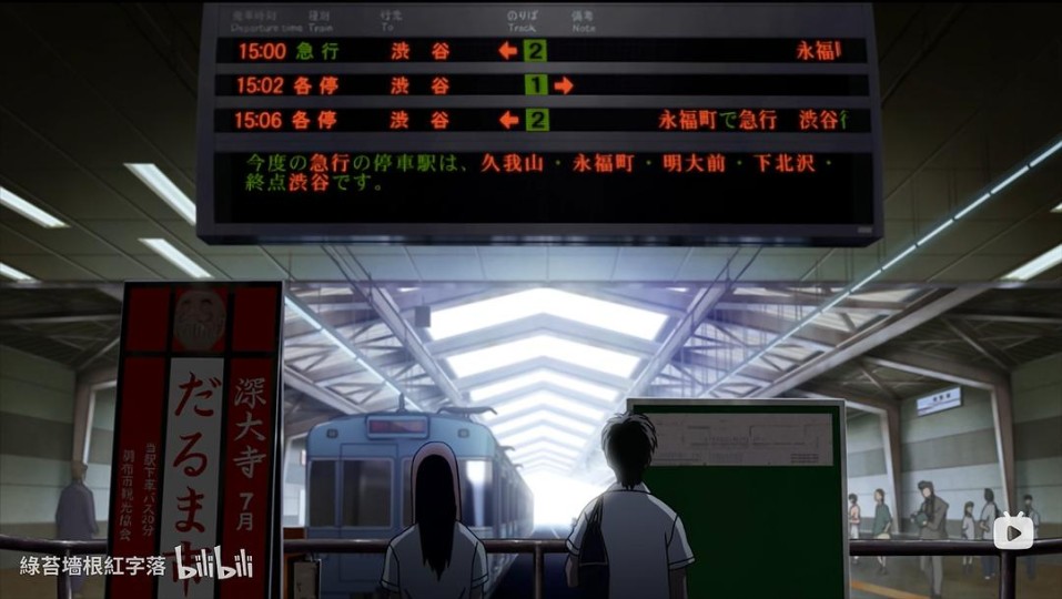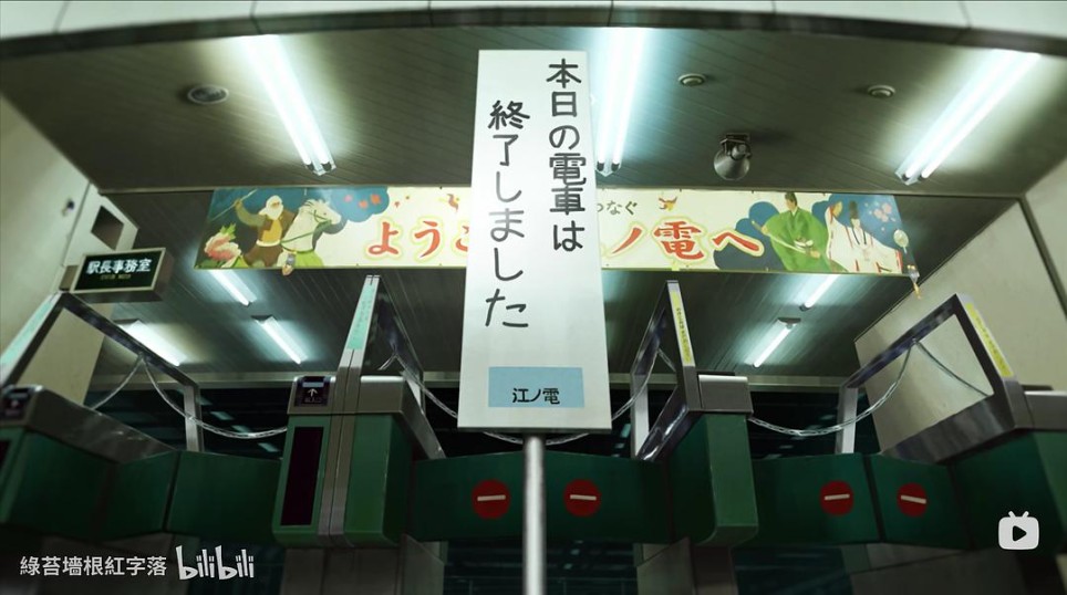 从途中场景还可以看出,他们依次路过了吉祥寺站、下北泽站,还坐过了一次车,最终到达藤泽时江之电已经停运。