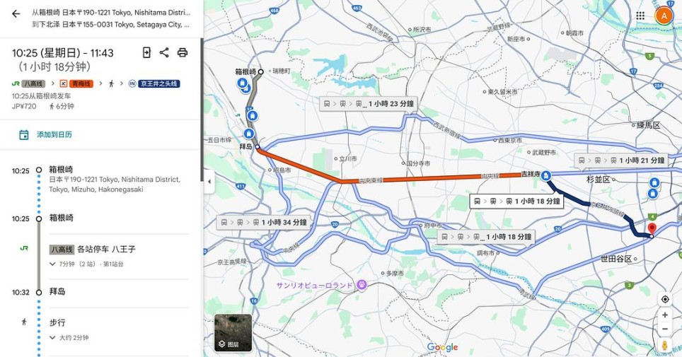 这里没有展示从下北泽出发到藤泽的部分