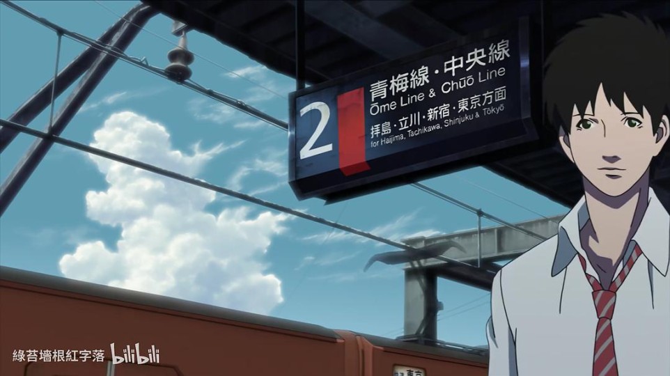 那么从最直接的证据开始:地铁站牌。不难看出主人公们是乘坐青梅线·中央线向新宿·东京方向前进,而拝島在站牌上出现则意味着他们处在比拝島站更西的某站台上。以湘南海边为目的地,需要先坐青梅线·中央线向东出发的就是多摩地区的羽村、福生这几个小城市。大致范围确定了,那他们的学校到底在哪儿呢?