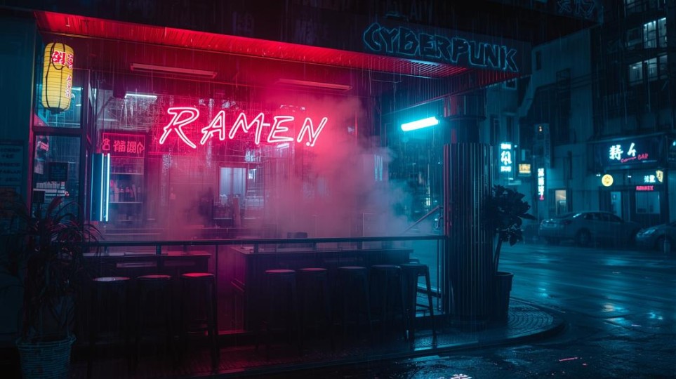 头图由Leonardo Lucid Origin 大模型生成,PROMPT: Cyberpunk ramen bar at night in a neon-lit city. Steam and rain mix with glowing holograms and reflections. Photoreal, cinematic lighting, high dynamic range, cool neon palette with magenta and cyan highlights.