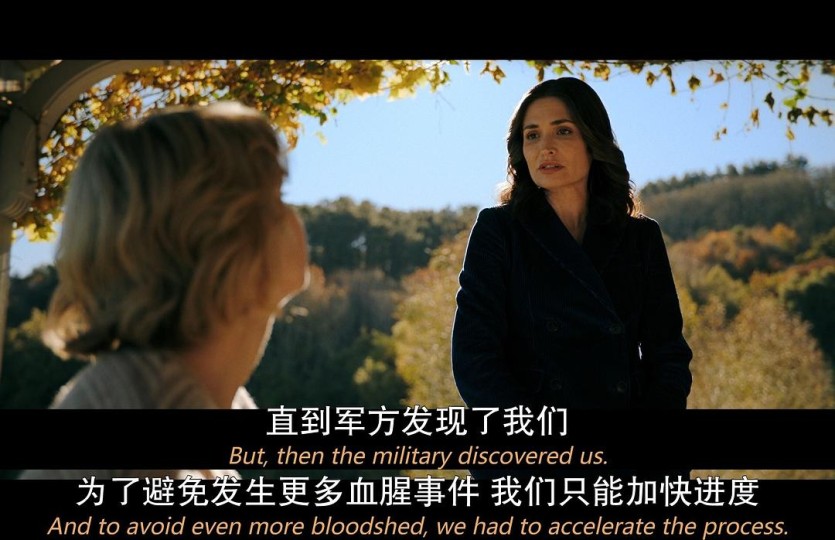 在Carol询问到同化造成的死亡时,Zosia说本来一切很和平,直到军方发现了它们,这里呼应了首集中酒吧电视上的新闻。加快进度是为了避免更多血腥,但这却造成了8亿多人的死亡,这令Zosia的说辞显得讽刺。接着Laxmi说Carol杀了一千一百万人,在飞机上开会时Otgonbayar还为Carol辩解,但其他人并无反应,可以看出此时其他人并不像Carol那样持怀疑和拒绝态度。从整体上看,未受感染的12人事实上等同于被群体封锁隔绝了,而局部中即使在幸存者内部也产生了分歧,Carol显得格格不入。站在群体的角度,地球就像一个封闭实验室,这些免疫者就像实验品,而所有行动就像一场场实验,那么是否会出现那只咬人的小白鼠?