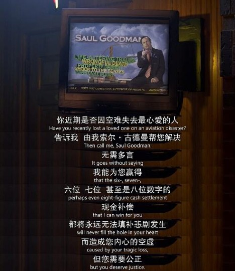 Wayfarer事故还出现在毒师S4的电视广告中,Saul打广告邀请任何受到 Wayfarer 515 航班空难影响的人来寻求服务获得赔偿。在广告中Saul的描述与他自己在BCS随后生活以及本剧中Carol的遭遇相似,都是因为事故突然失去至亲或挚爱(Chuck/Helen)而内心空虚。Saul是在Wayfarer航班上改变想法不再逃避,选择和Kim一样说出真相匡扶正义,而Carol也正是最后在这个航班上改变态度冲下飞机。值得一提的是,本剧令我想到《守望尘世》,两部剧都有讲述浩劫过后留下来的人要如何面对失去又该如何继续前进,而本剧可能侧重于后者。