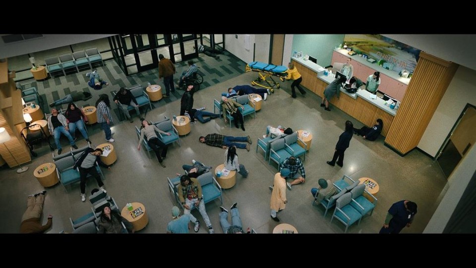 从剧集海报到各种设备服饰,不难发现剧中频繁出现明亮黄色,颜色可以用来影响人的情绪、行为和感知,这里则是微妙暗示剧情将如灿烂阳光般温暖人心,但本剧的基调实则充满悲观色彩。快乐病毒席卷全球,只有主角等少数人幸免又只能旁观。Carol身为畅销书作家却认为作品一文不值,她作为悲观主义者遇上这场末日灾难,与无处不在的明亮欢快的色彩形成强烈反差,巧妙突显出剧情中阴暗诡异的氛围。
