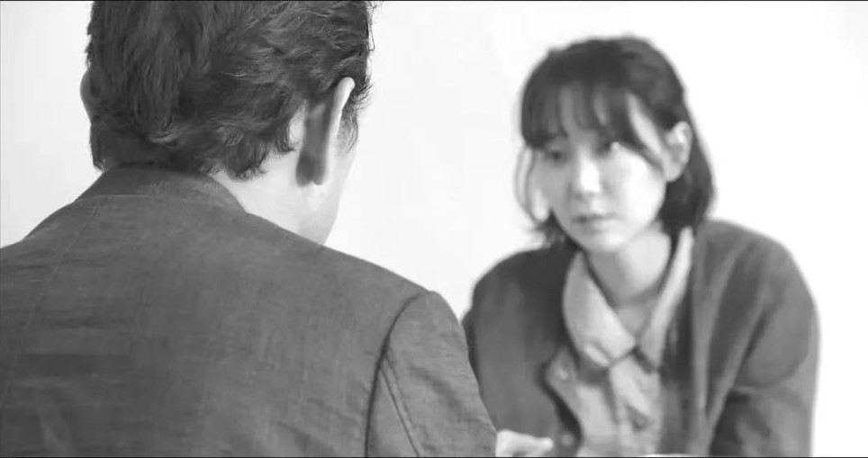 咖啡馆的角落,这里仿佛是一个独立出来的位置,一位写作者坐在电脑前,用文字试着描述刚才目睹的一段对话:女人和对面的男人,他们被包裹在当下发展着的钢琴奏鸣曲中,又时刻遭受着某种过去,彼此的言说不断留下令人难以忍受的空隙。写作者为她观察到的情境下了一个判断:“他深知自己内心,藏有可怕的真相”,然后,伴随着《罗恩格林序曲》的幻想光芒,男人走出咖啡馆,把玩起路边植物的叶片——一个孤独的人物和一株植物,洪常秀就此拍摄了一个拥有自己秘密的形象。而那位写下文字的人,那位小说家、虚构者、描述情境的人(?),或者更恰当的说,是记录下一隅偶然性,并提出问题猜想的人,她把文本抛向自己身旁的形象。一些故事展现出来,秘密的光芒在对话间若隐若现。不过,虚构不是独属于写作者的特权。金敏喜饰演的美丽不是一个绝对的旁观者,相反,她的观察和虚构活动在一段时间后便会终止,因为她也要进入到自己的情境当中(也许正因如此,她才显得有些暴躁)。她也像咖啡馆里的所有其他人一样,会和人相遇并进入到一段对话里,他们共同维系了一种匀速——这基于同一种结构:写作者在边缘角落撰写自己听见的对话,这和一位探险家拿起放大镜,观察路边遇到的一株奇特的植物,是相似的行动:他们首先被偶然性吸引,并带着最直接的好奇心看向它。